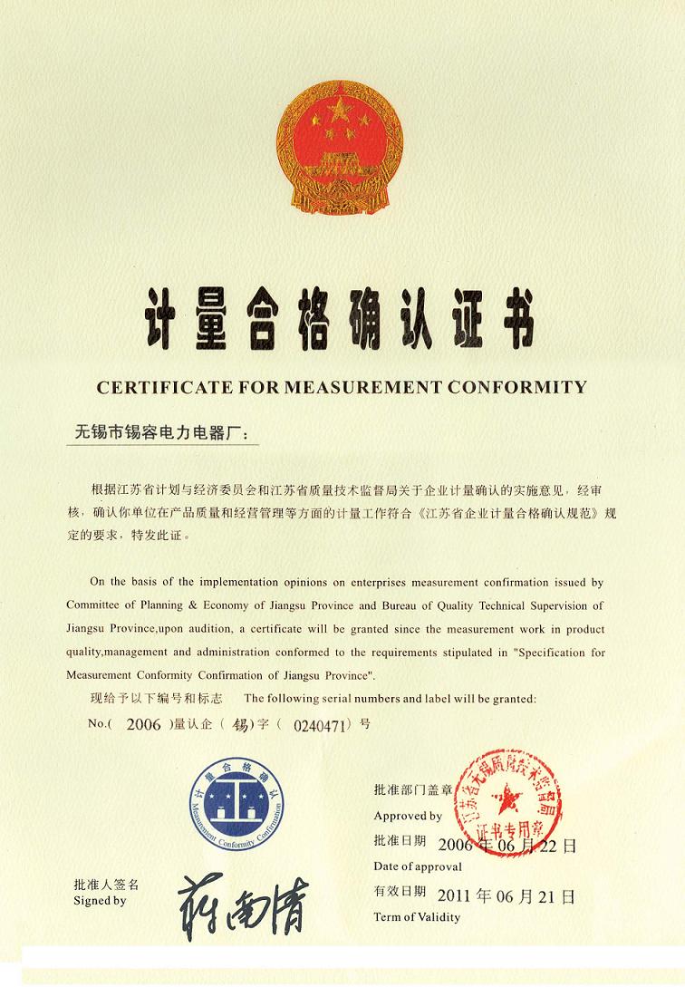 Measurement certificate release time:2020-07-20 04:19:06source:Wuxi Xirong Electric Appliance Co., Ltd.Click:1753